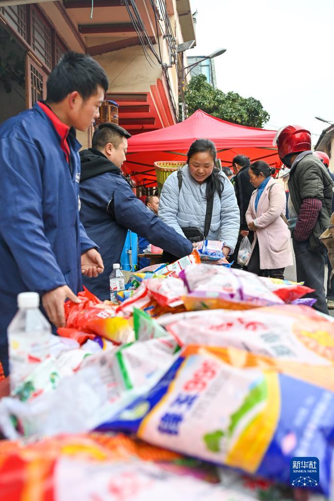 2月24日,在貴州省畢節市百里杜鵑管理區在拱村,趕集的人們在選購種子。