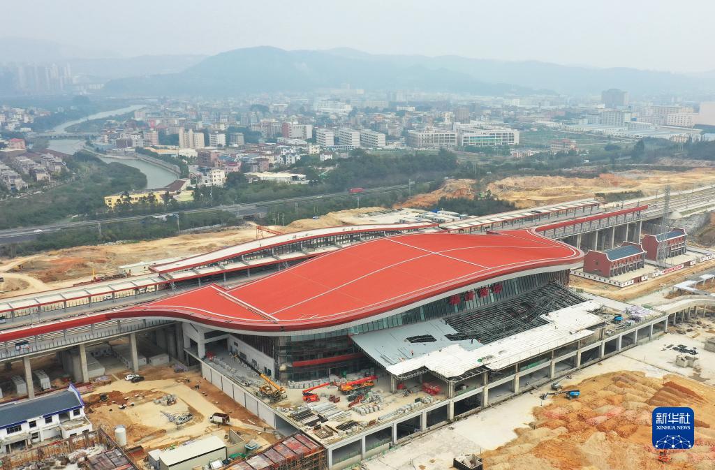 2月19日拍攝的新建福廈鐵路福清西站(無人機照片)。
