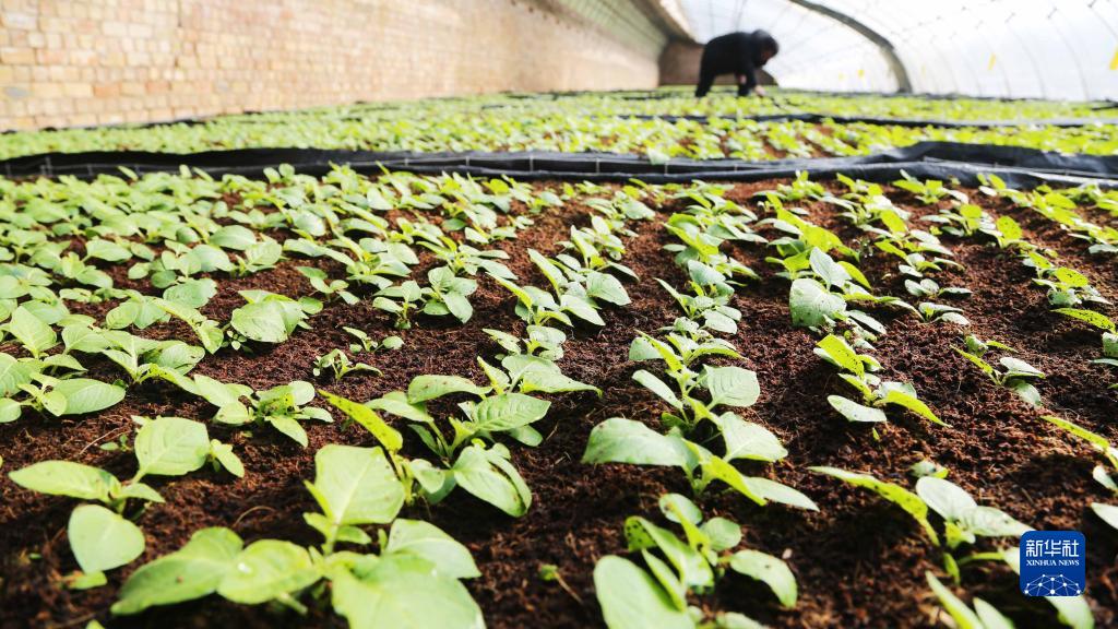 2月23日,工人在甘肅省定西市安定區香泉鎮馬鈴薯種薯扶貧產業園管護脫毒種薯苗。