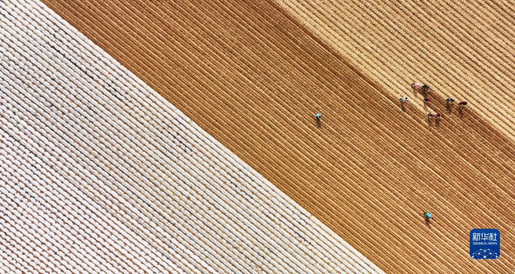 2月23日,山東省臨沂市郯城縣郯城街道農民在田間勞作(無人機照片)。