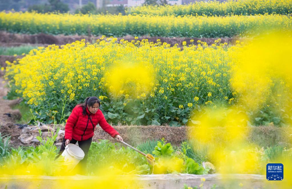 2月23日,村民在貴州省黔東南苗族侗族自治州從江縣貫洞鎮貫洞村給蔬菜澆水。