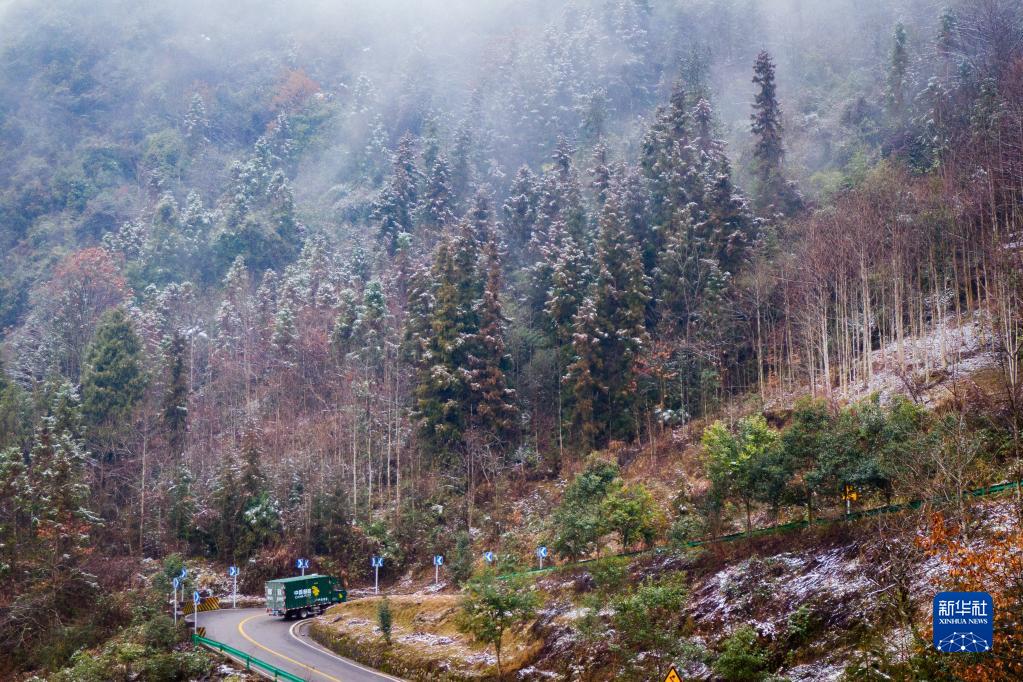 2月22日,一輛郵車在送郵件的途中(無人機照片)。
