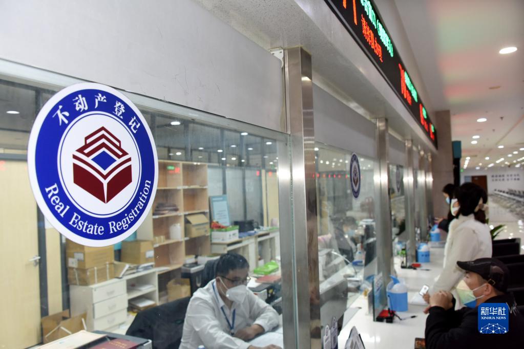 2月23日,市民在青島西海岸新區不動產登記中心辦理不動產權證書。