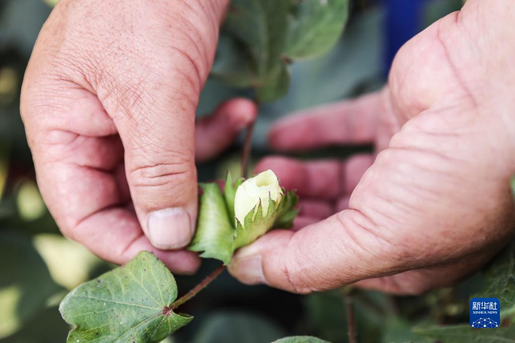 2月23日,在三亞的國家南繁科研育種基地里,棉花育種專家趙國忠在棉田里忙碌。