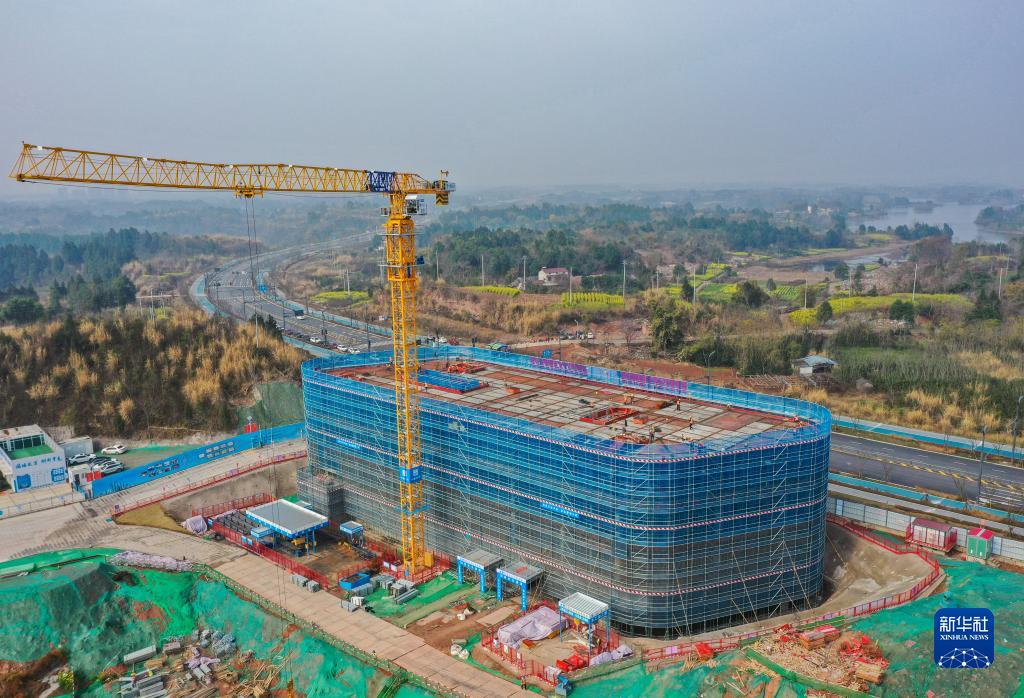 這是2月24日在成都東部新區拍攝的四川大學華西東部醫院項目現代國際急診急救中心1號樓(無人機照片)。