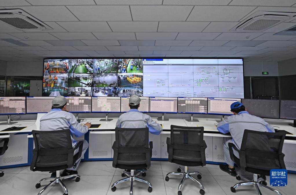 在天津海河乳品有限公司智能化生產線控制中心內,工作人員在監控生產線運轉情況(2月20日攝)。