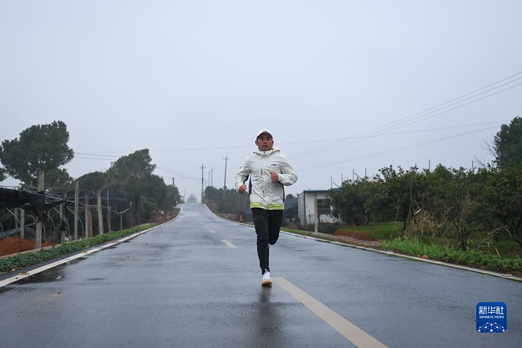 2月24日,羅書堅在浙江省金華市婺城區羅店鎮三甲山村跑步訓練。