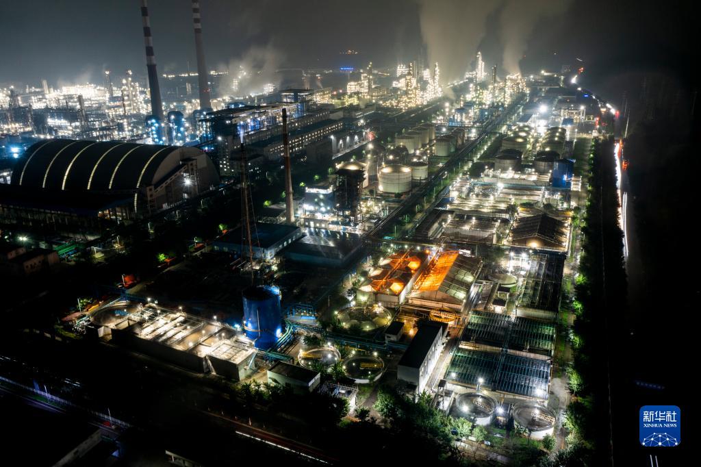 2月21日在重慶涪陵區白濤新材料科技城拍攝的企業夜間生產景象(無人機照片)。