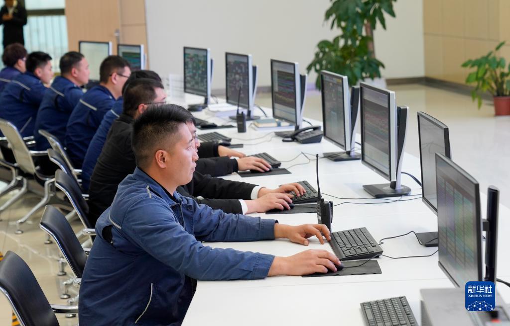 2月16日,在重慶萬凱新材料科技有限公司中央控制室,技術人員利用智能化工業控制設備監控PET高分子新材料生產情況。