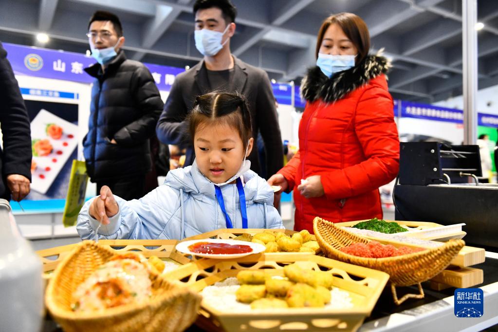 當日,2023中國(日照)海洋食品預制菜發展大會在山東日照舉行。來自各地的海洋食品預制菜亮相預制菜博覽會。