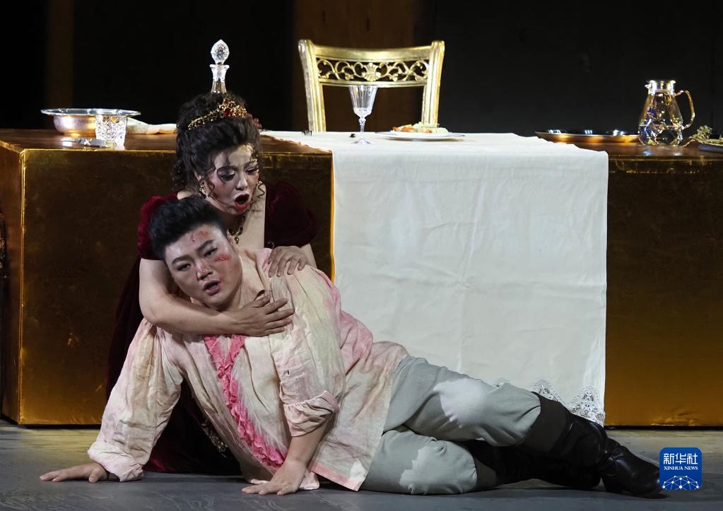 當晚,由國家大劇院、上海歌劇院與陜西大劇院聯合制作的新版普契尼歌劇《托斯卡》在上海大劇院上演。此次演出特別邀請上海歌劇院院長、著名指揮家、鋼琴家許忠執棒,著名女高音歌唱家和慧領銜主演。新版歌劇《托斯卡》還將在北京、西安和福建巡回上演。新華社記者 任瓏 攝