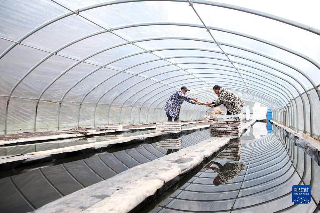 2月24日,重慶市黔江區阿蓬江鎮柒坨村,村民在大棚里育苗。