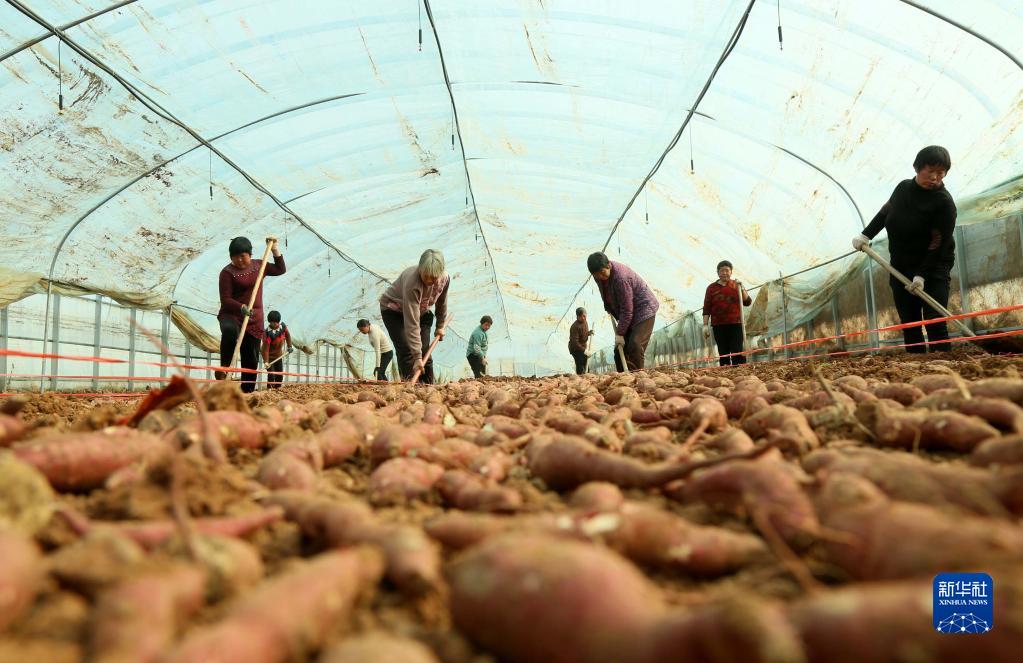 2月24日,在河南省洛陽市汝陽縣劉店鎮洪嶺村,農民在溫室大棚育紅薯苗。