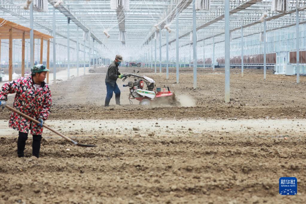 2月25日,在湖南省湘西土家族苗族自治州吉首市乾州街道西門口村,農民在一家智慧農業博覽園大棚里勞作。