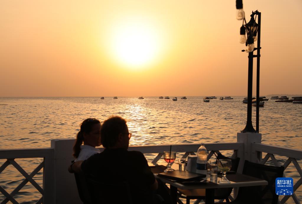 2月21日,游客在坦桑尼亞桑給巴爾島的海邊餐廳用餐。