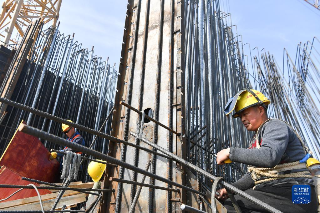 2月24日,中鐵十八局工人在位于西安市周至縣的陜西引漢濟渭工程渭河管橋施工現場工作。