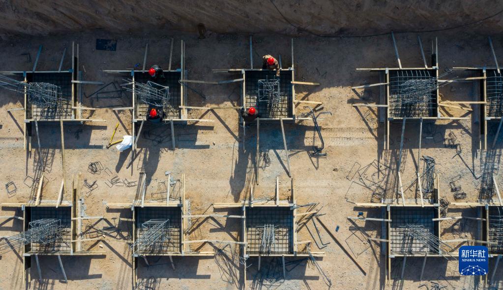 這是2月24日拍攝的寧夏同心縣韋州鎮現代高效節水農業項目施工現場(無人機照片)。