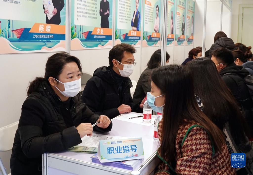 2月25日,職業指導師和就業服務專家在招聘會上為求職者提供職業指導咨詢服務。