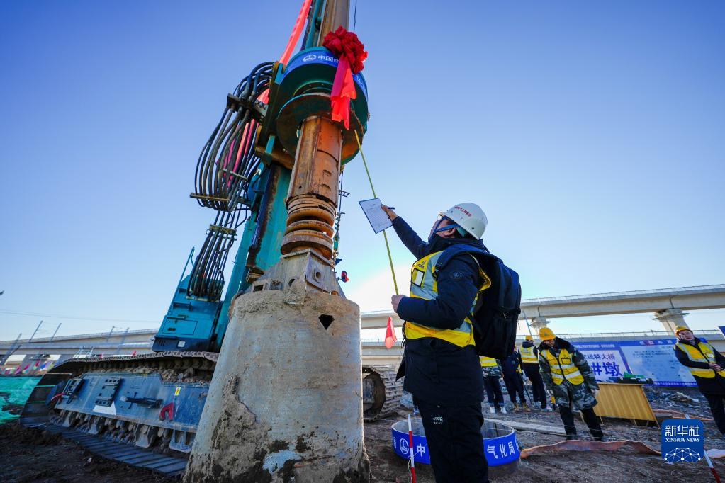 2月25日,中鐵電氣化局的施工人員在雄忻高鐵新蓋房特大橋建設現場指揮鉆孔作業。