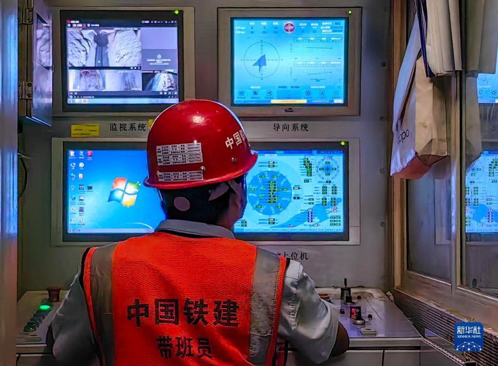 2月25日,中國鐵建大橋局技術員在東莞地鐵1號線水濂山站右線隧道操作“務實號”盾構機。