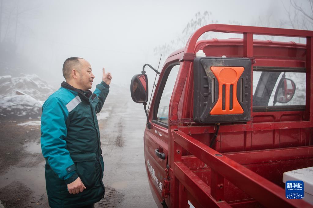 2月23日,陳祖章在送件路上與村民交談。