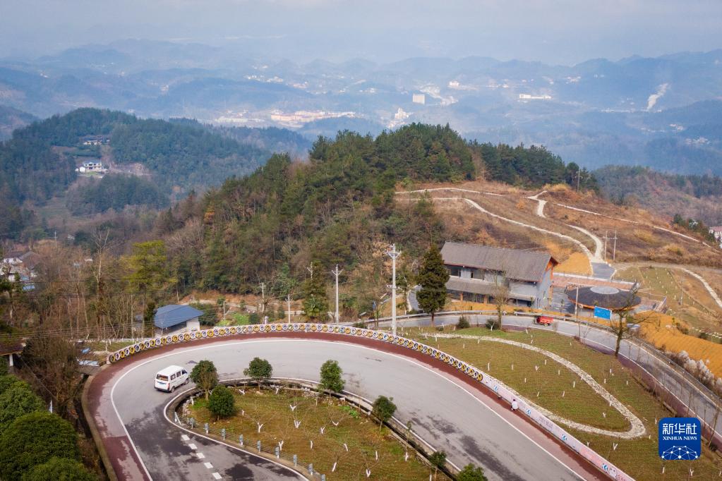 2月24日,陳祖章開車行駛在送件的路上(無人機照片)。
