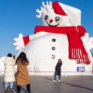 2月25日,游客在哈爾濱太陽島雪博會園區游玩。