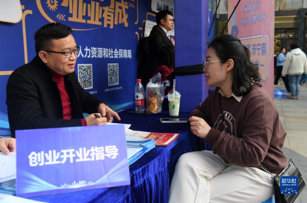 2月25日,在廣西南寧市青秀萬達廣場,市民在創業展現場咨詢創業信息。