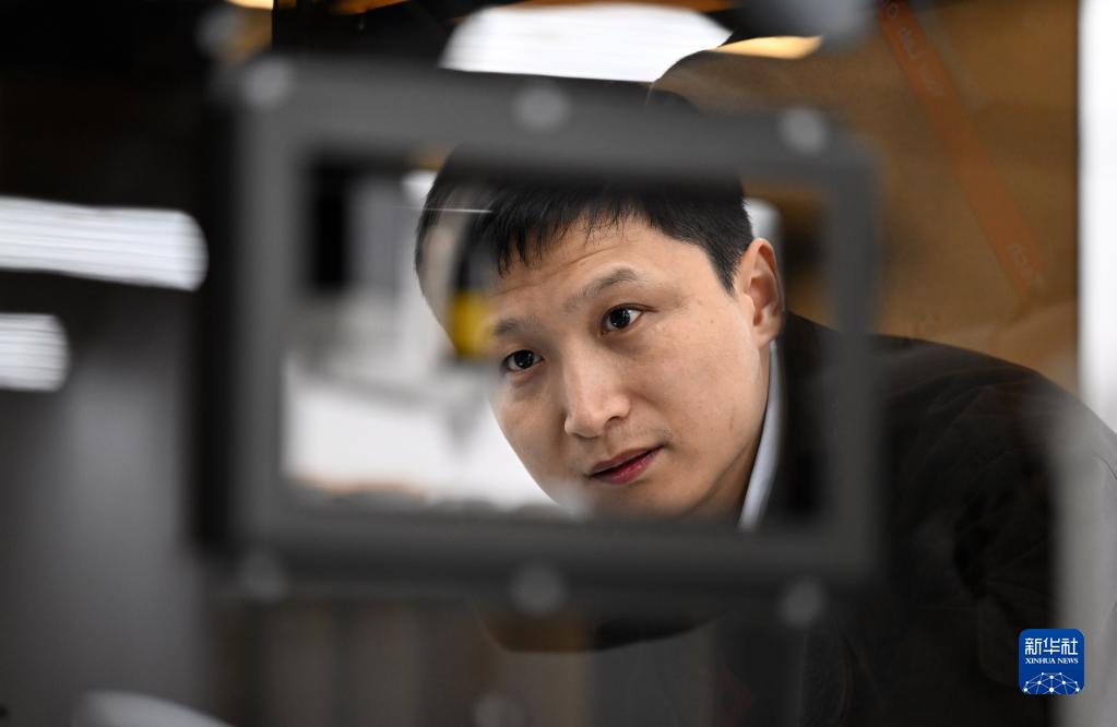 在萊伯泰科(天津)科技有限公司,劉學在車間查看儀器設備(2月23日攝)。今年37歲的劉學曾在北京工作多年。2019年,他和妻子于麗新一起被派到天津寶坻京津中關村科技城,參與分公司的設立?,F在他們一家人已經在天津落戶。于麗新希望家人健康平安、孩子學業有成。劉學說,妻子的愿望就是他的愿望。