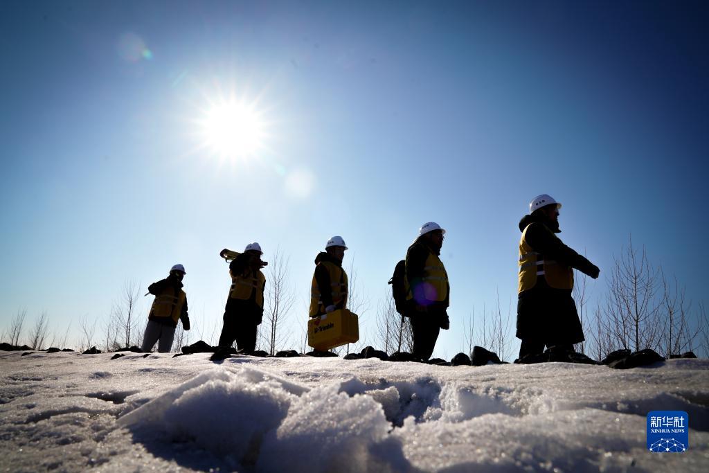 2月25日,黃騰(右一)與同事在佳撫鐵路佳富段進行外業調查。