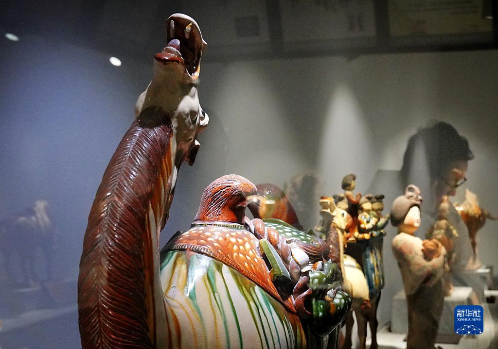 游客在洛陽市洛邑古城的店鋪內觀看展品(2月22日攝)。