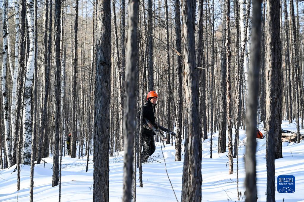2月23日,烏龍岱林場402工隊職工溫樹昌在林區作業。