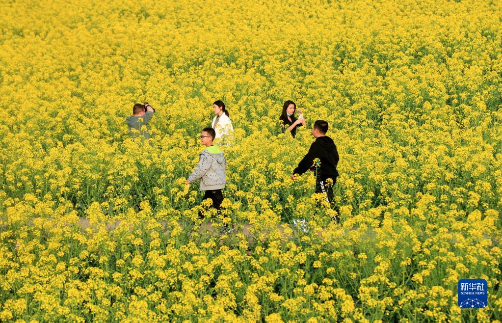 2月25日,游人在四川省瀘州市瀘縣喻寺鎮譚壩村油菜花海賞景游玩。