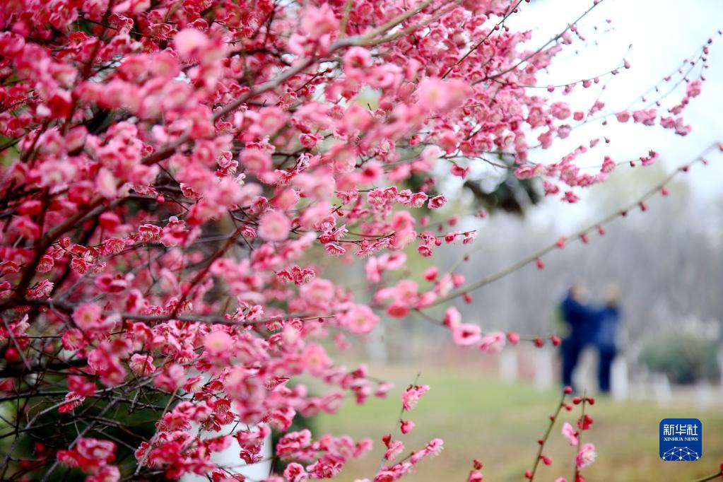 2月26日,游人在湖北省十堰市鄖陽區柳陂公園觀賞梅花。