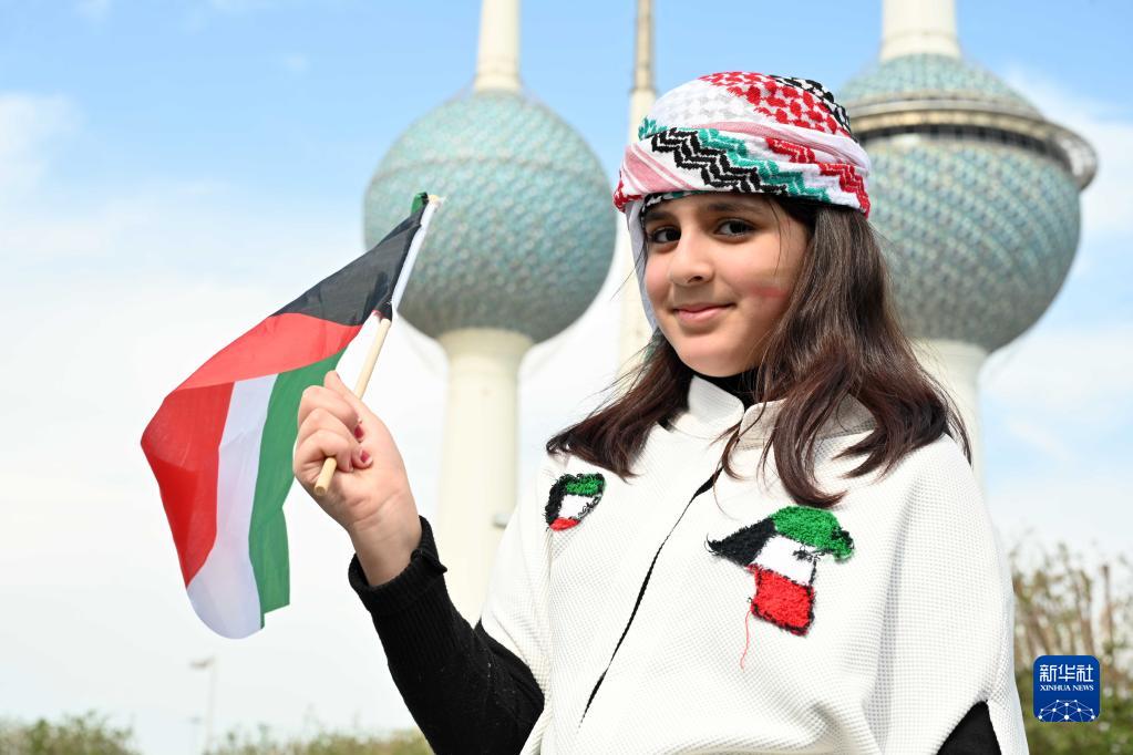 2月25日,一名女孩在科威特首都省參加慶?;顒?。