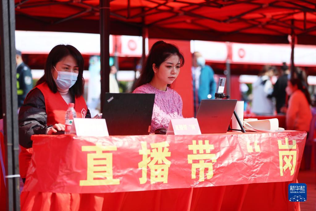 2月26日,工作人員現場直播介紹企業崗位信息。