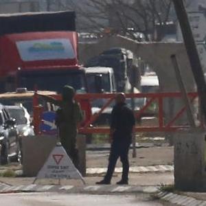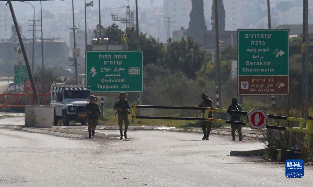 2月26日,以色列士兵在約旦河西岸城市納布盧斯以南胡瓦拉鎮一處檢查站警戒。