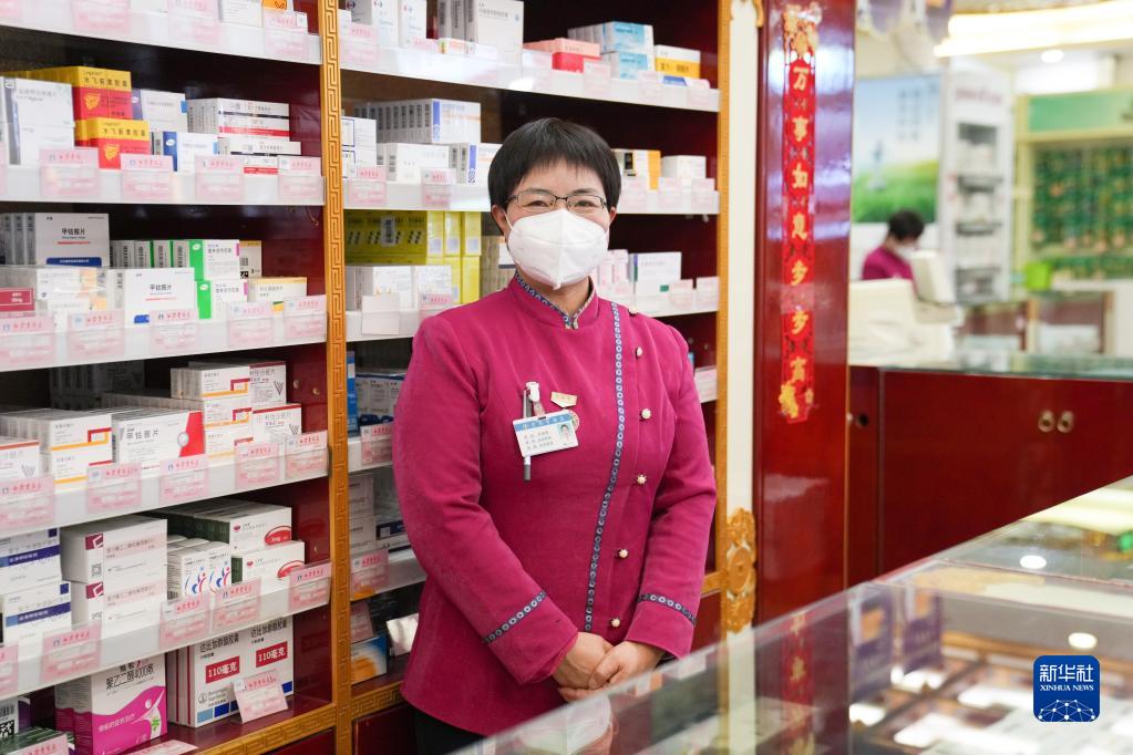 張海鷗在北京金象復星醫藥股份有限公司白塔寺藥店內(2月14日攝)。