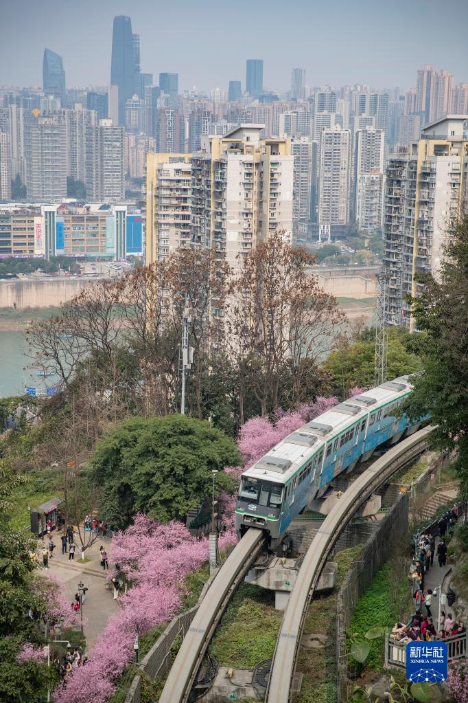 這是2月27日拍攝的運營中的重慶軌道交通2號線列車。