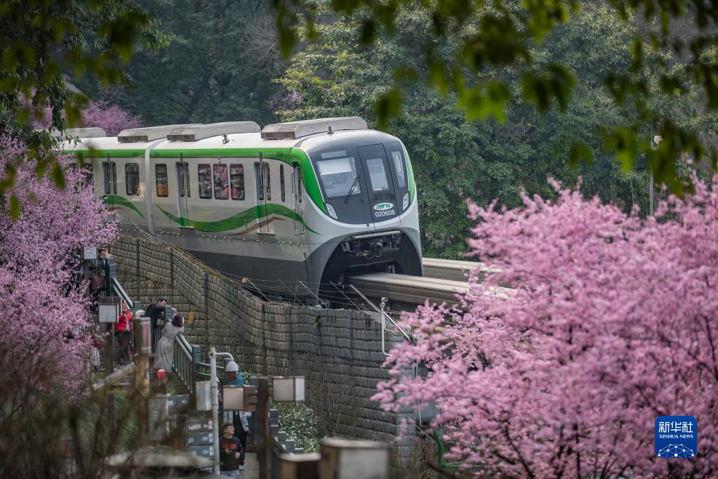 這是2月27日拍攝的運營中的重慶軌道交通2號線列車。