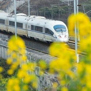 春暖花開時節,油菜花陸續盛開,列車穿行其間,美不勝收。