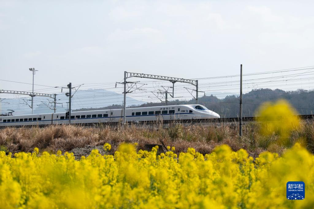 2月26日,動車組列車在貴廣高鐵貴州從江段行駛。