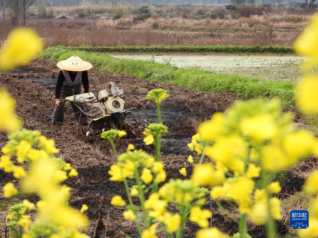 2月27日,在四川省達州市高新區金埡鎮金通村,村民駕駛旋耕機翻田。