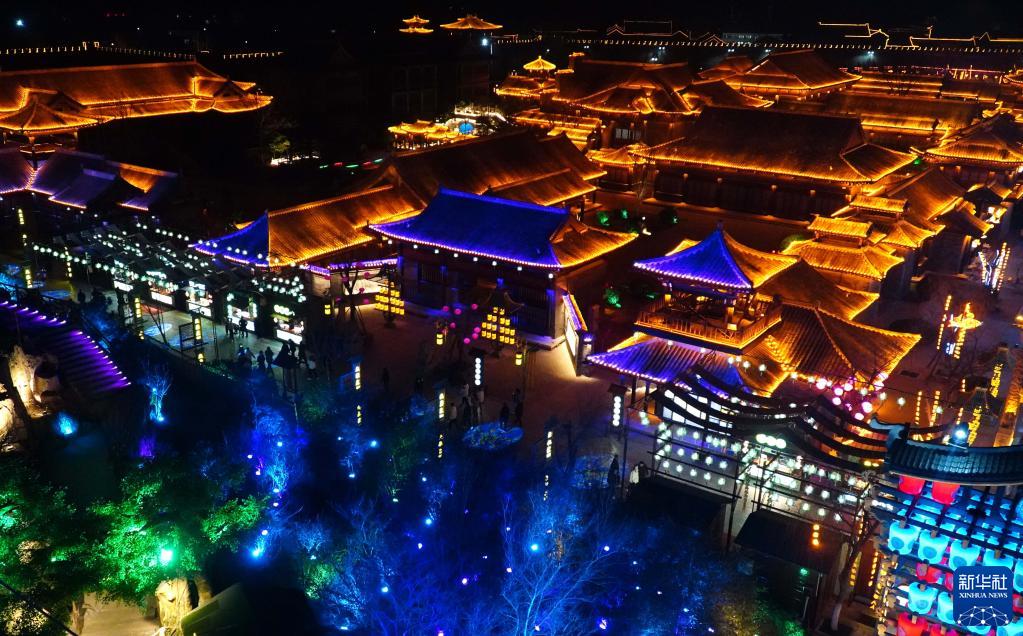 2月27日拍攝的位于山東省東平縣的大宋不夜城夜景。
