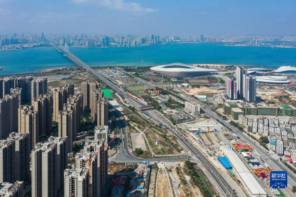 2月28日,廣湛鐵路湛江灣海底隧道盾構區間“過海穿城”(無人機照片)。