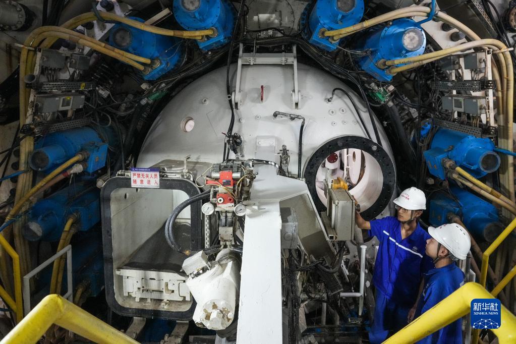 2月28日,技術人員在廣湛鐵路湛江灣海底隧道盾構區間檢查盾構機設備狀況。