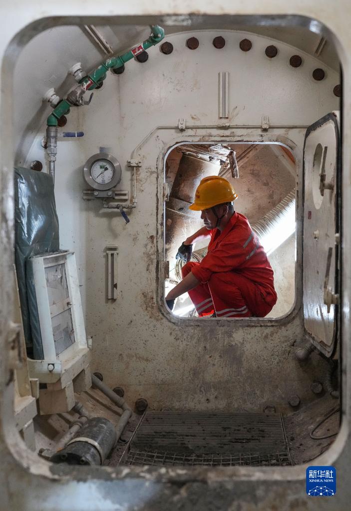 2月28日,施工人員在廣湛鐵路湛江灣海底隧道盾構區間檢查盾構機設備狀況。