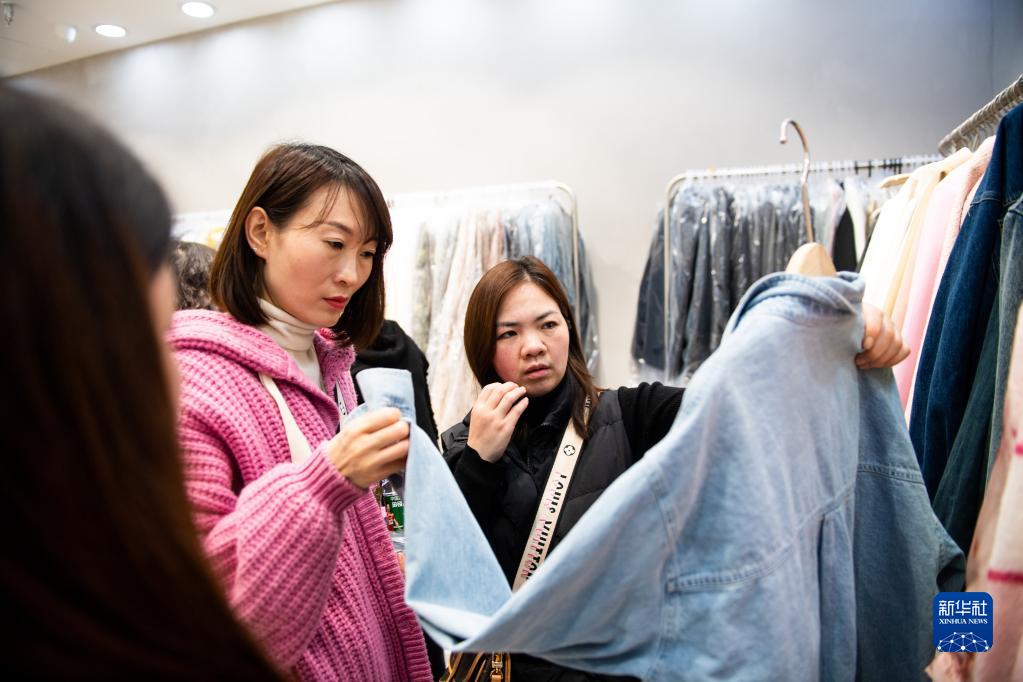 2月28日,批發商在湖南省株洲市蘆淞區華麗服裝批發大市場選購服飾。