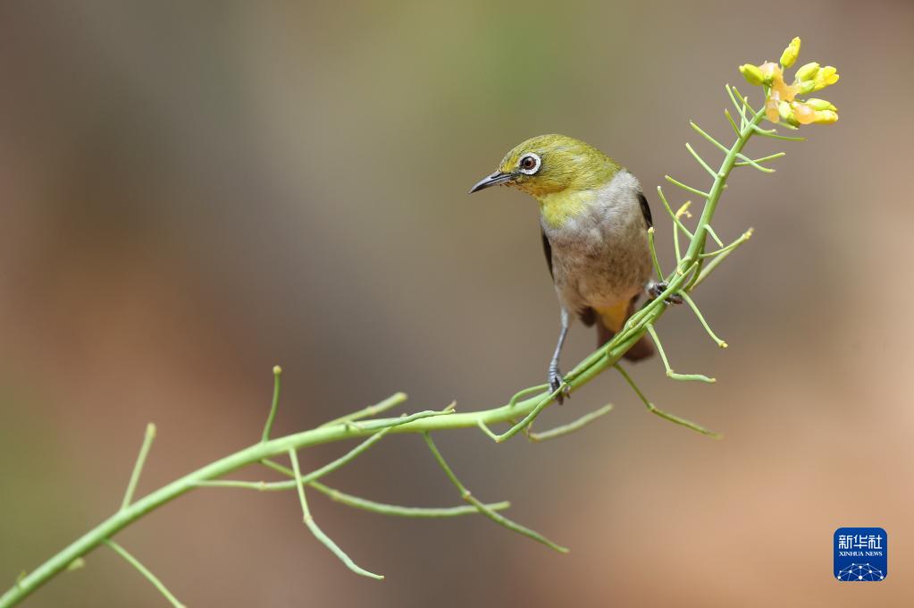 春回大地,萬物復蘇。鳥兒在花叢中覓食休憩,一派生機勃勃的春日景象。