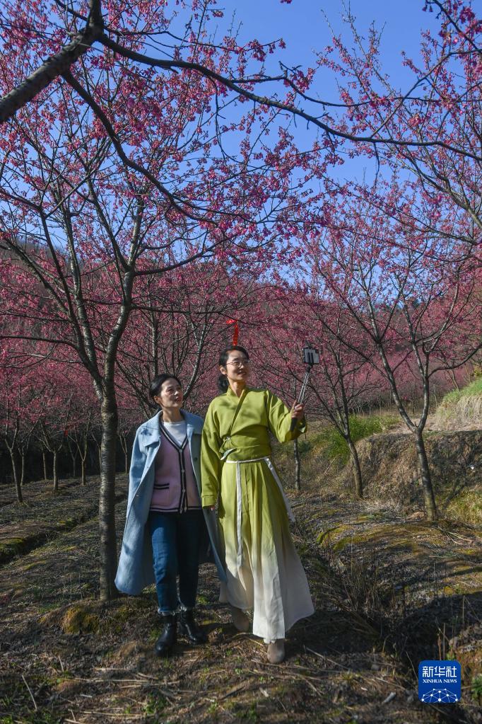 2月28日,杭州市臨安區玲瓏街道的青年志愿者在米積村的千畝櫻花林里進行直播,向網友推薦鄉村美景。近年來,米積村在回鄉創業新鄉賢的推動下種植觀賞性櫻花,現擁有櫻花種植面積1000余畝10萬余株,同時,玲瓏街道相關部門與米積村共同邀請在外打拼的新鄉賢企業家回鄉創業,合作開發櫻花資源。